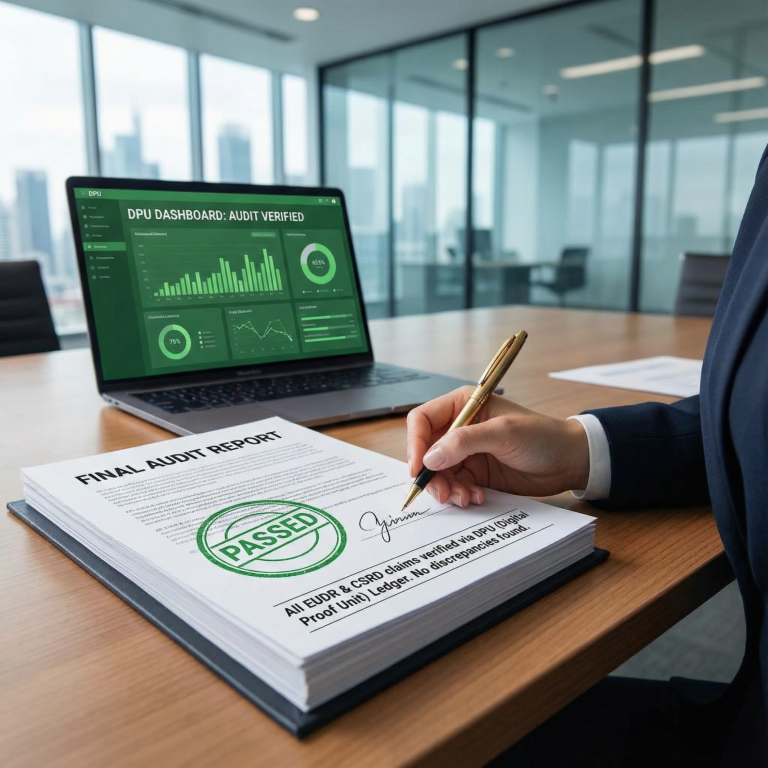 Lo standard DPU la fornisce collegando origine, materiali, produzione e impronta ambientale in un unico registro sigillato crittograficamente.